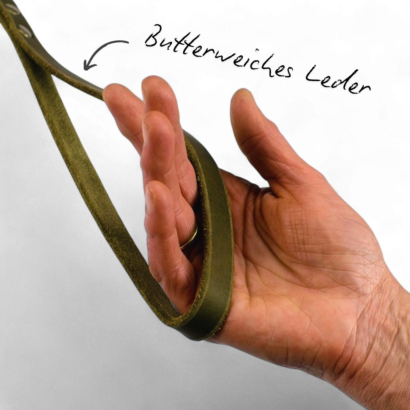Leine, Halsband & Spender im gleichen butterweichen Leder – stilvoll für Alltag, Training und Ausflüge.